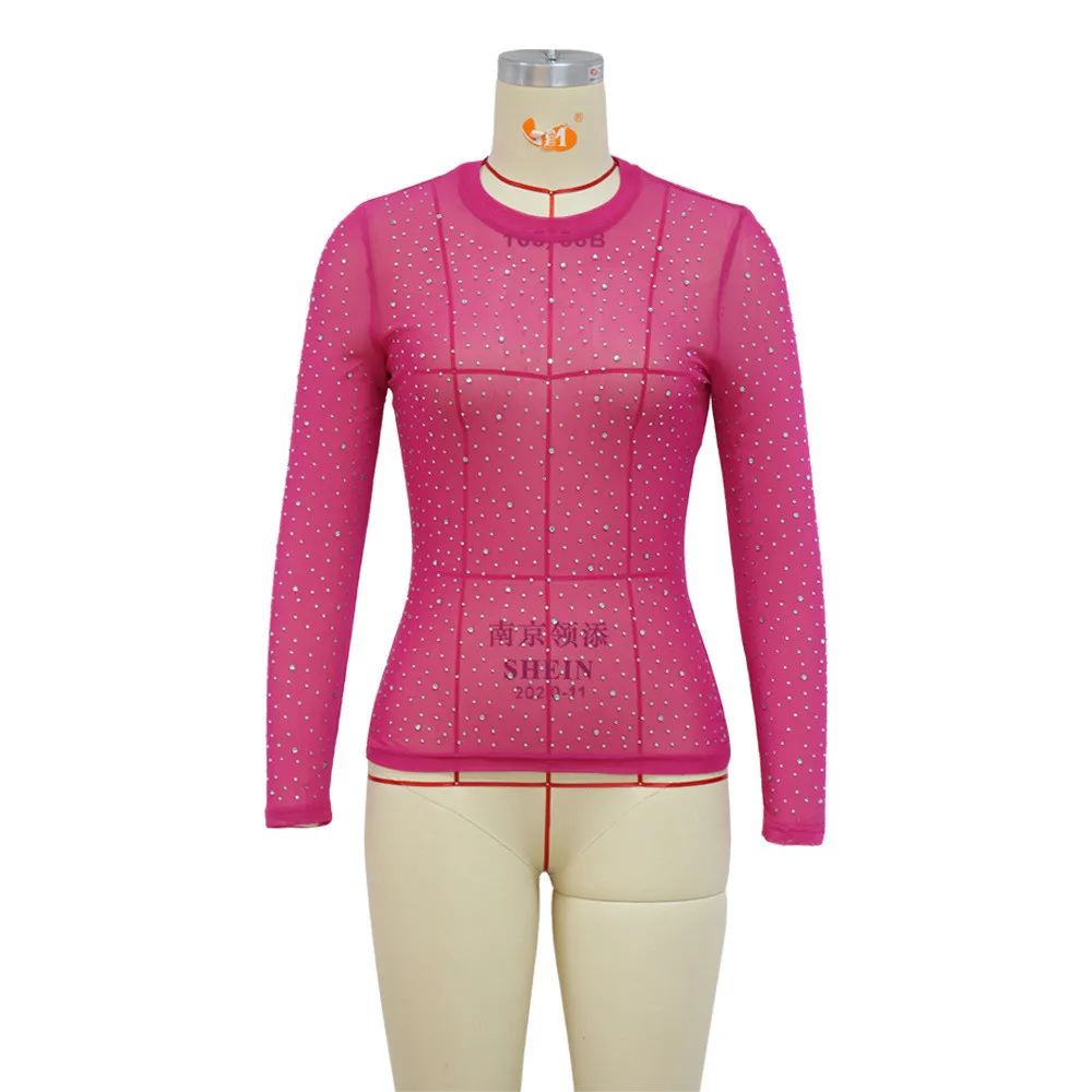 | Product Name | Women See-Through Beaded Long Sleeve Top |