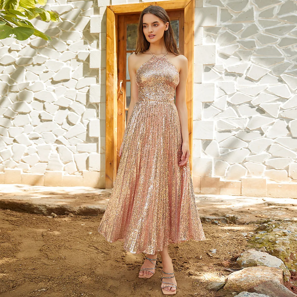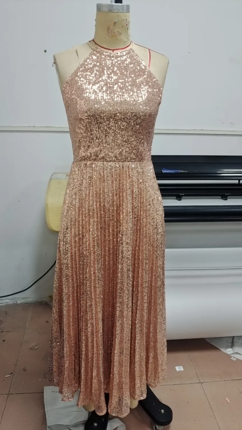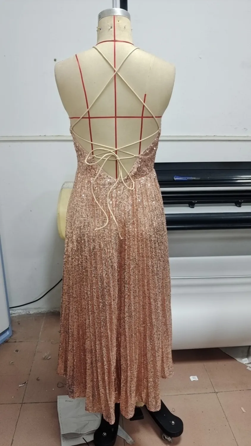 | Product Name | Women Sexy Backless Pleated Halter Neck Backless Sequined Evening Gown |