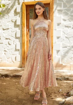 This Women Sexy Backless Pleated Halter Neck Backless Sequined Evening Gown Design Made Of High Quality Polyster And Spandex Material. It Come With Good Stretch And Wearing Comfortable. Women’s Midi Dresses Is Omnipotent And Suit For All Kinds Of Occasions – Daily Wear, Go To The Church, Commuting And Events Occasion. Midi Dresses Should Not Be Boring, Find Best Midi Dresses At Global Lover With Trendy Styles.
