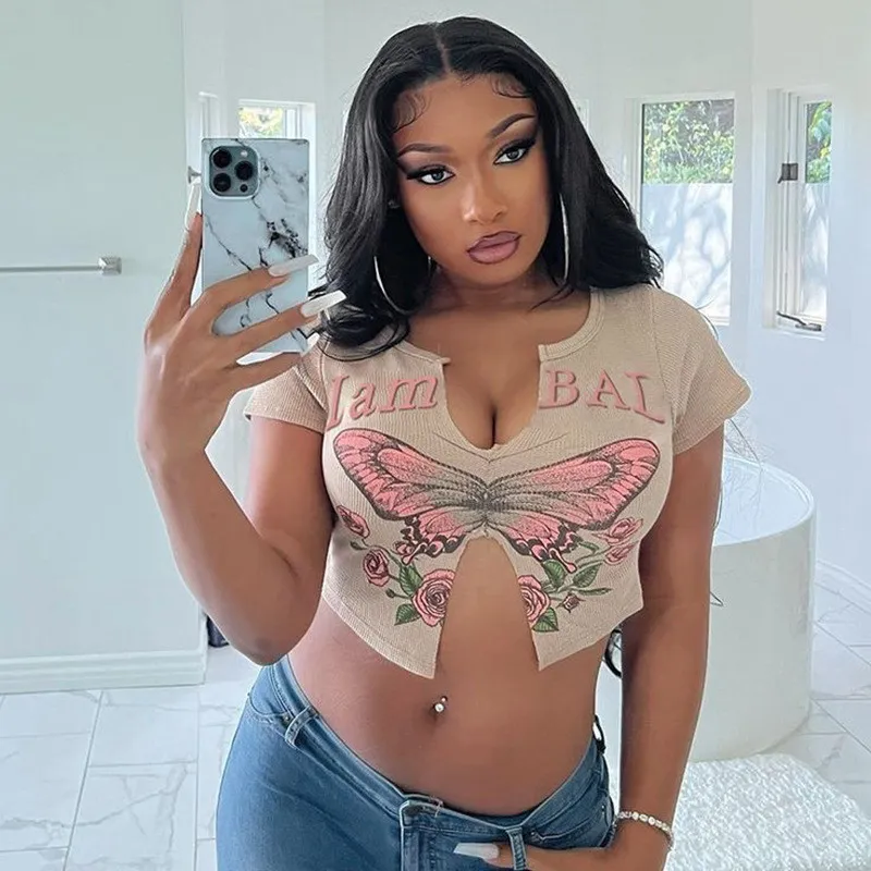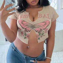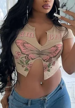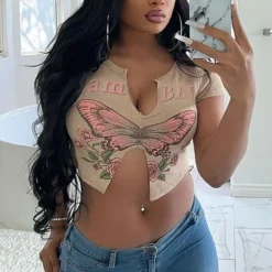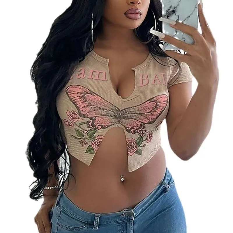 This Women Sexy Butterfly Print Short Sleeve u Neck t-Shirt Design Made Of Thick Polyster And Spandex Materail, Which Is Soft And Comfortable. Crop Tops For Women Almost Earn Enough Rate Of Second Glance In Summer. Cute Crop Tops Has Become a Summer Collocation Method Especially Favored By Young Ladies. Find Huge Selection Of Cheap Wholesale Sexy Crop Tops At Global Lover Now.