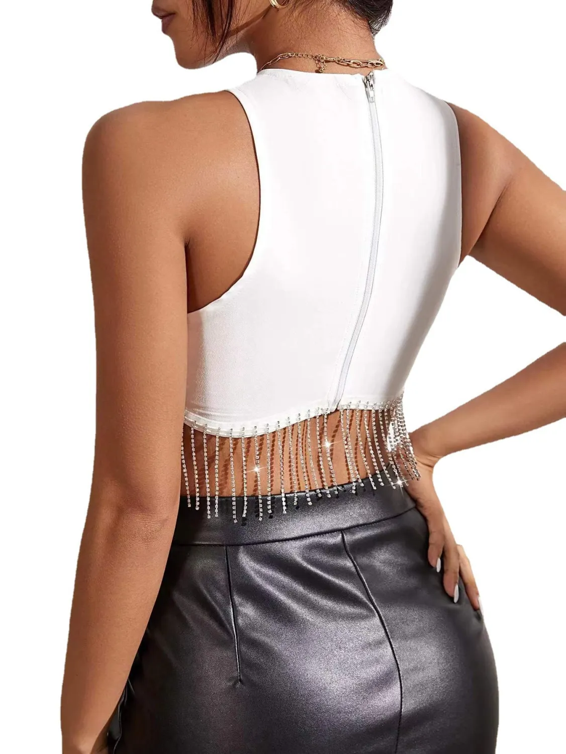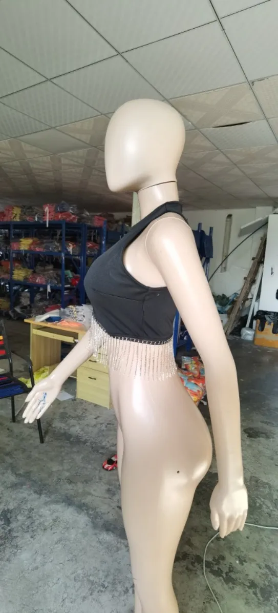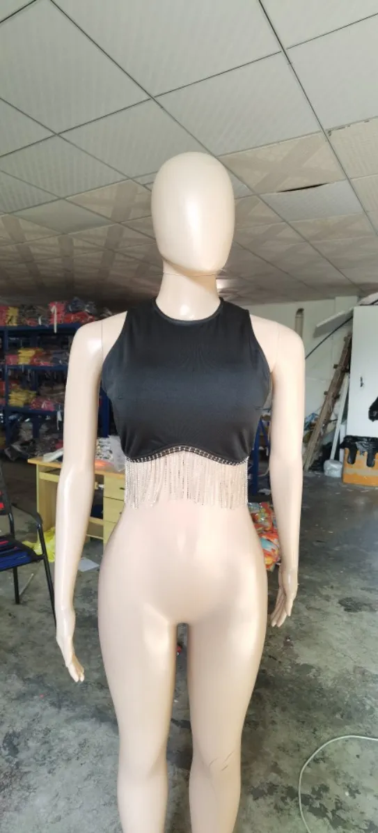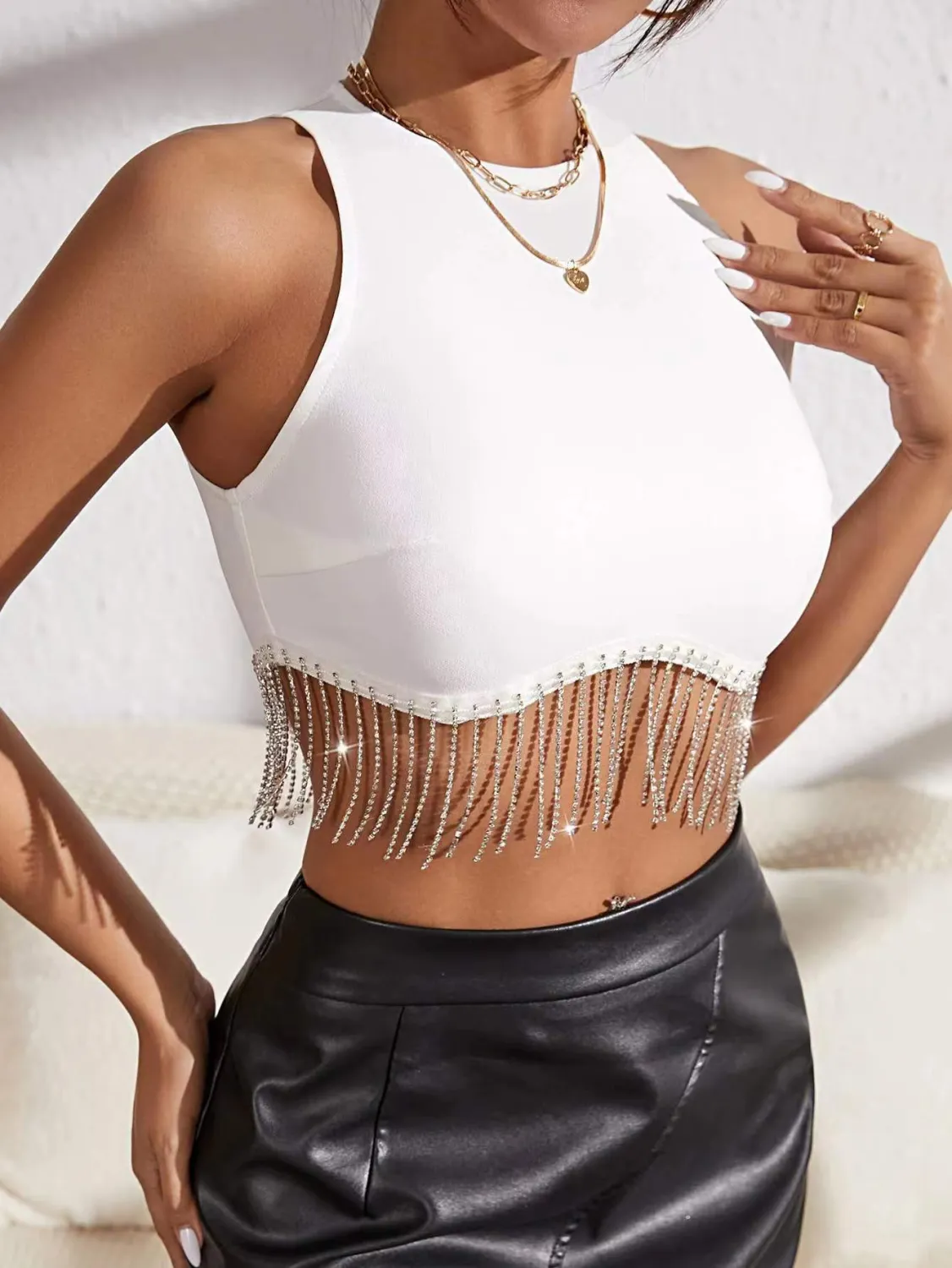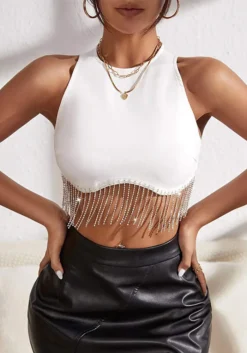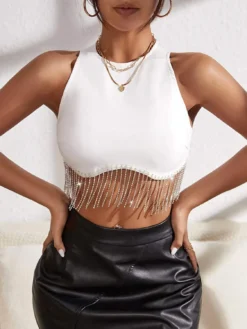| Product Name | Women Sexy Solid Rhinestone Tassel Sleeveless Halter Neck Crop Tank Top |