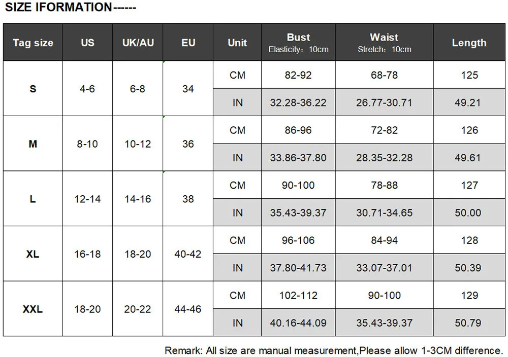 High Elasticity Fabric๏ผPlease add 0-0.5 CM from the garment size to body size.