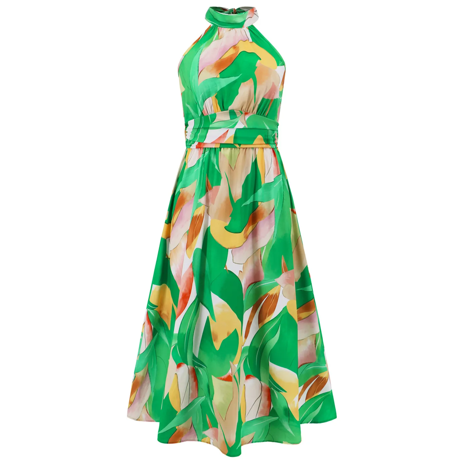 | Product Name | Women Sexy Stand Collar Sleeveless Printed Maxi Dress |
