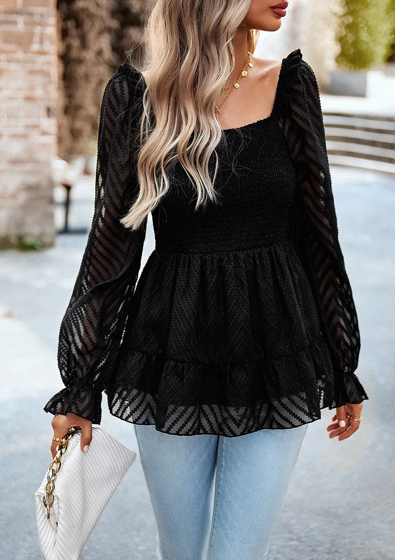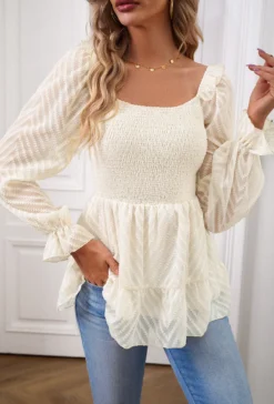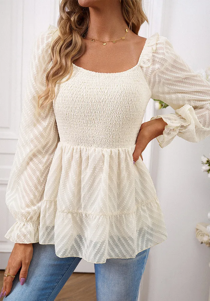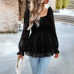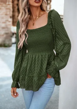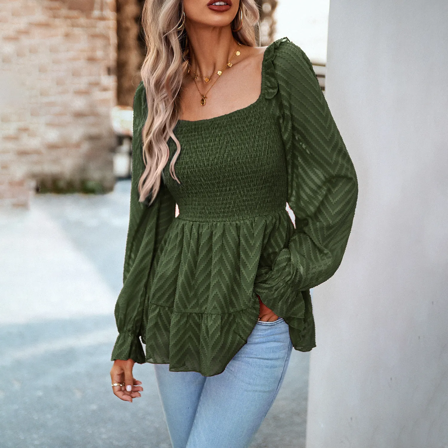 | Product Name | Women Solid Color Square Neck Long Sleeve Shirt |