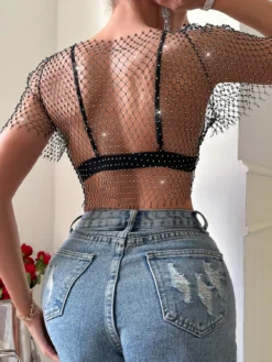 | Product Name | Women Spring Summer Bikini Rhinestone Lace-Up See-Through Sexy Top |