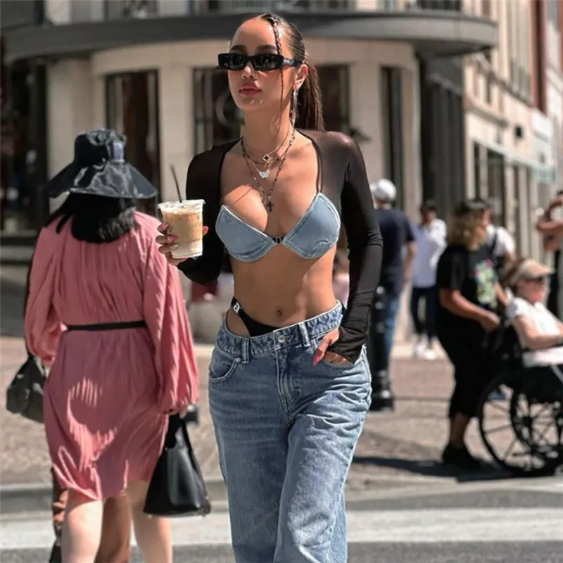 This Women Streetwear Denim Mesh Patchwork See-Through Backless Crop Top Design Made Of Thick Polyster And Spandex Materail, Which Is Soft And Comfortable. Crop Tops For Women Almost Earn Enough Rate Of Second Glance In Summer. Cute Crop Tops Has Become a Summer Collocation Method Especially Favored By Young Ladies. Find Huge Selection Of Cheap Wholesale Sexy Crop Tops At Global Lover Now.