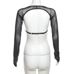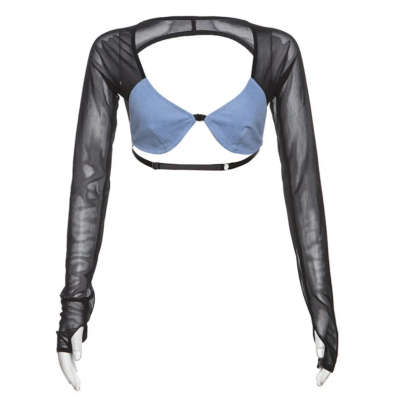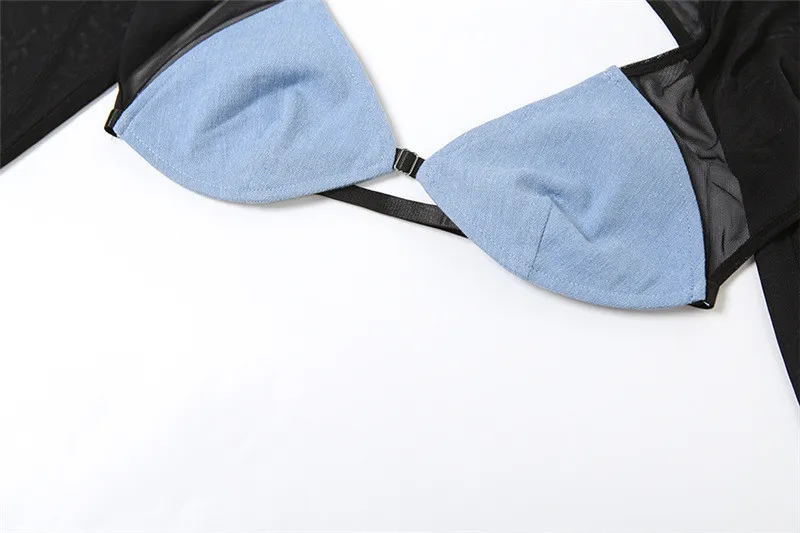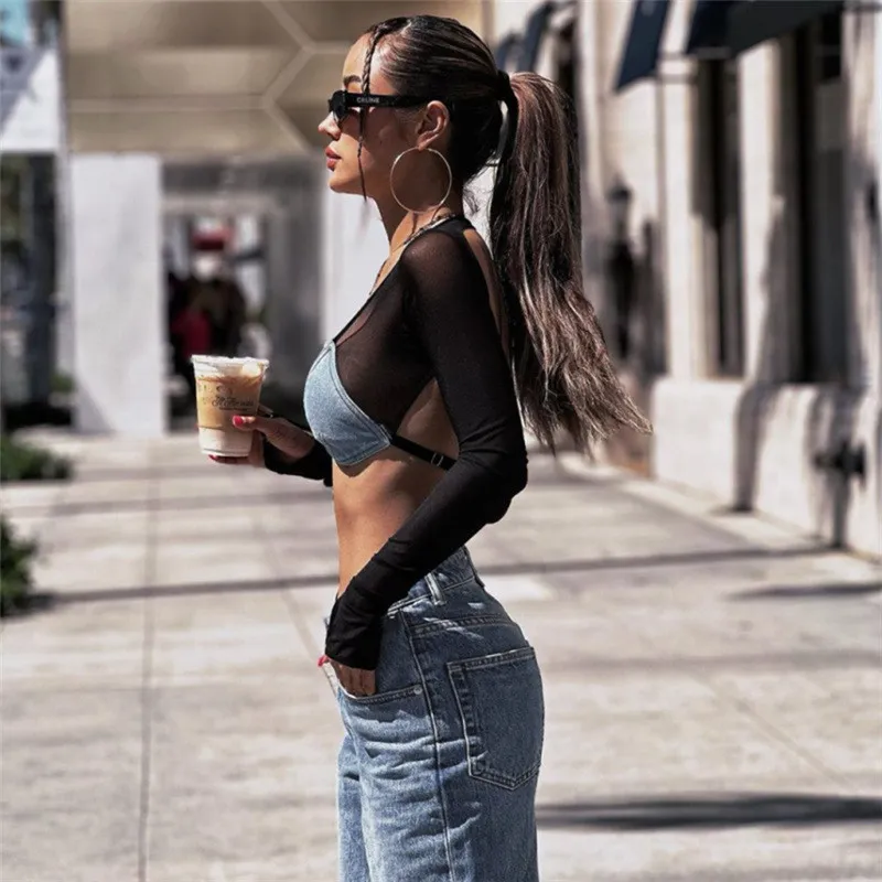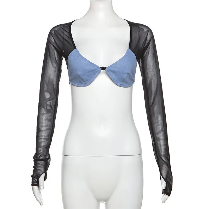 | Product Name | Women Streetwear Denim Mesh Patchwork See-Through Backless Crop Top |