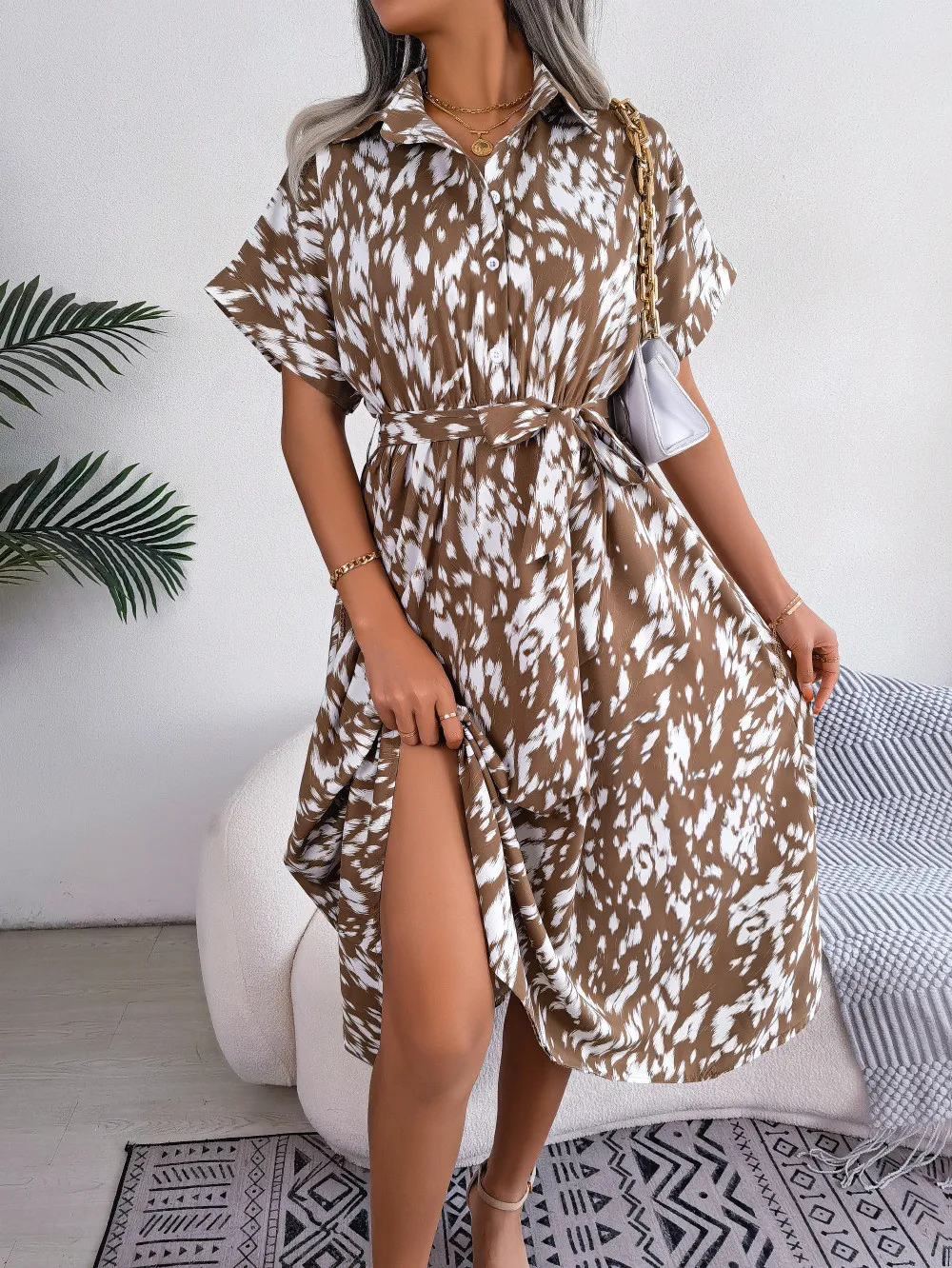 This Women Summer Casual Loose Leopard Tie Shirt Dress Design Made Of High Quality Polyster And Spandex Material. It Come With Good Stretch And Wearing Comfortable. Womenโs Midi Dresses Is Omnipotent And Suit For All Kinds Of Occasions – Daily Wear, Go To The Church, Commuting And Events Occasion. Midi Dresses Should Not Be Boring, Find Best Midi Dresses At Global Lover With Trendy Styles.