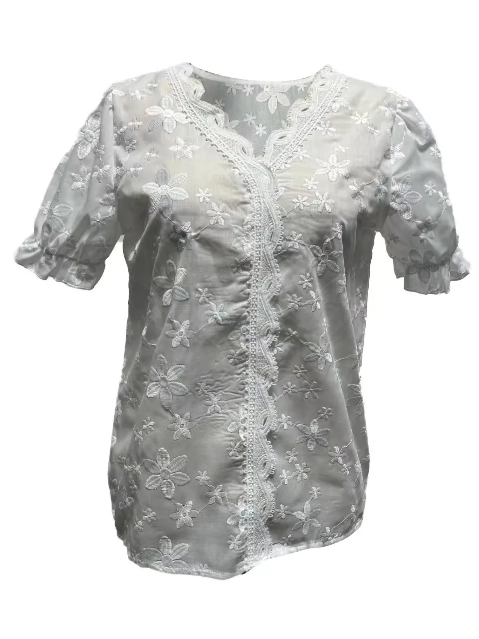 | Product Name | Women Summer Casual V-Neck Lace Patchwork Shirt |