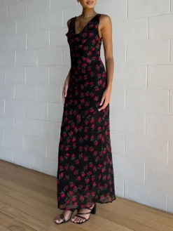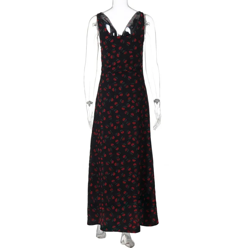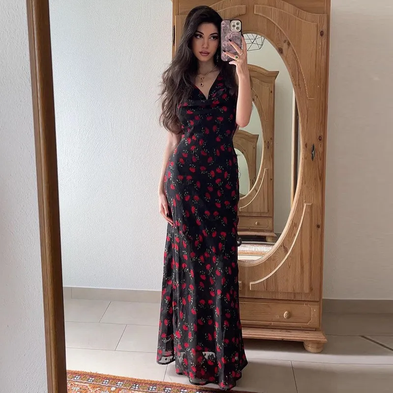 | Product Name | Women Summer French Holidays Printed V-Neck Strapless Chiffon Dress |