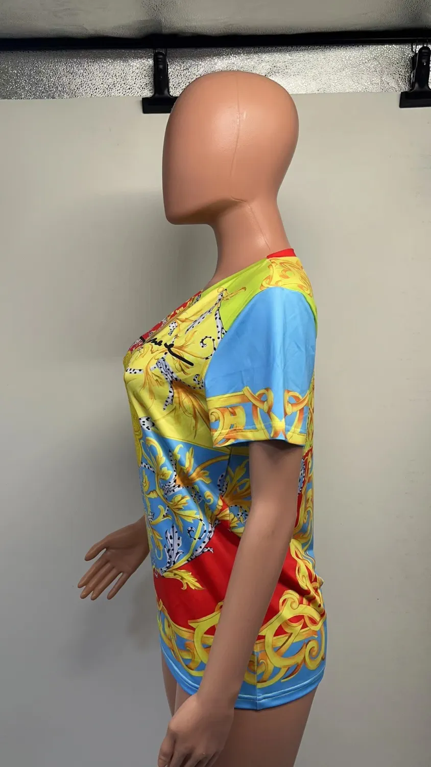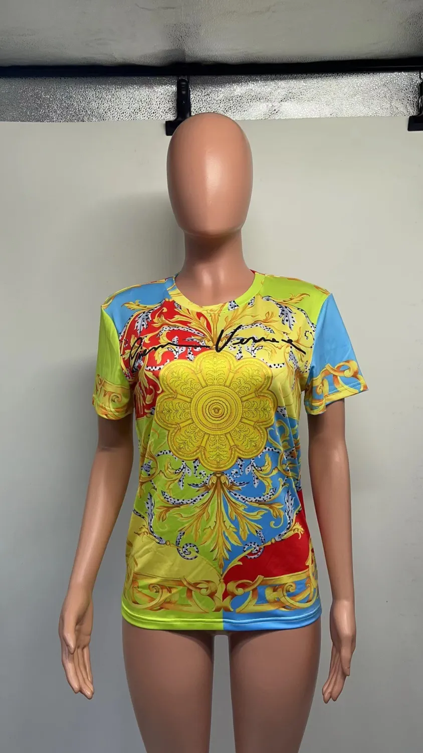 This Women Summer Print t-Shirt Design Made Of Thick Polyster And Spandex Materail, Which Is Soft And Comfortable. It Is a Must-Have Item For All Seasons. Global Lover Offer Most Fashionable Wholesale Women’s t Shirts – From Basic White And Black t Shirts To Lace, And Print t Shirts For Wholesale. We Also Make Customized Shirt With Your Personalized Logo And Print With Low Moq.