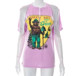 This Women Summer Printed v-Neck Slit Tassel Loose t-Shirt Design Made Of Thick Polyster And Spandex Materail, Which Is Soft And Comfortable. It Is a Must-Have Item For All Seasons. Global Lover Offer Most Fashionable Wholesale Women’s t Shirts – From Basic White And Black t Shirts To Lace, And Print t Shirts For Wholesale. We Also Make Customized Shirt With Your Personalized Logo And Print With Low Moq.