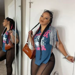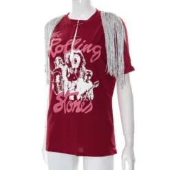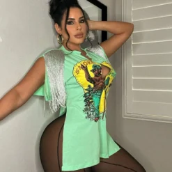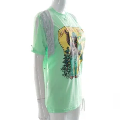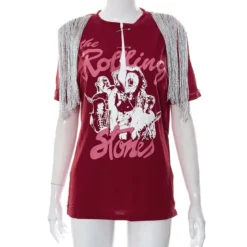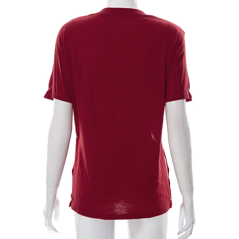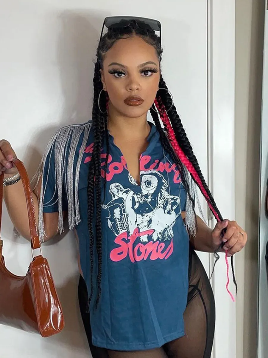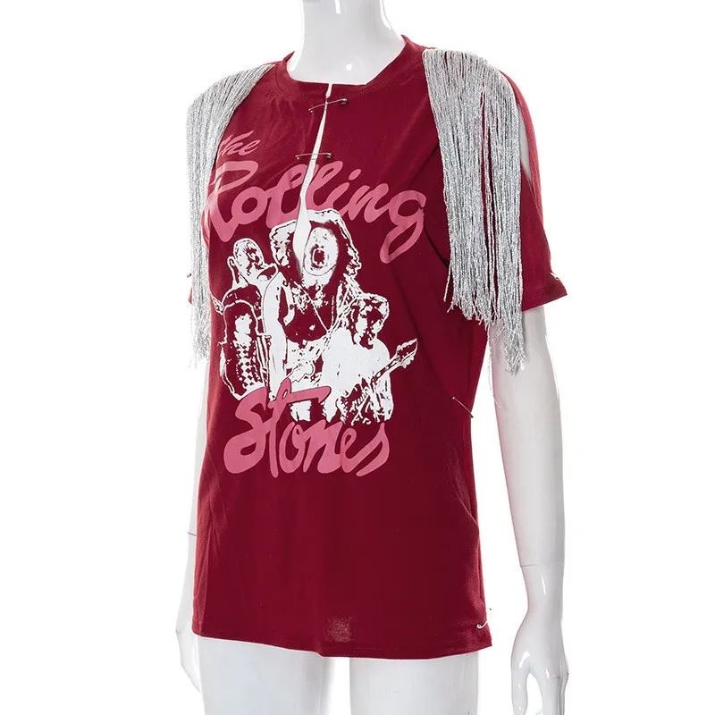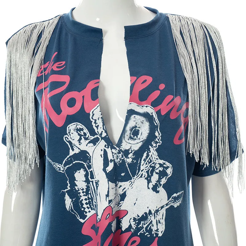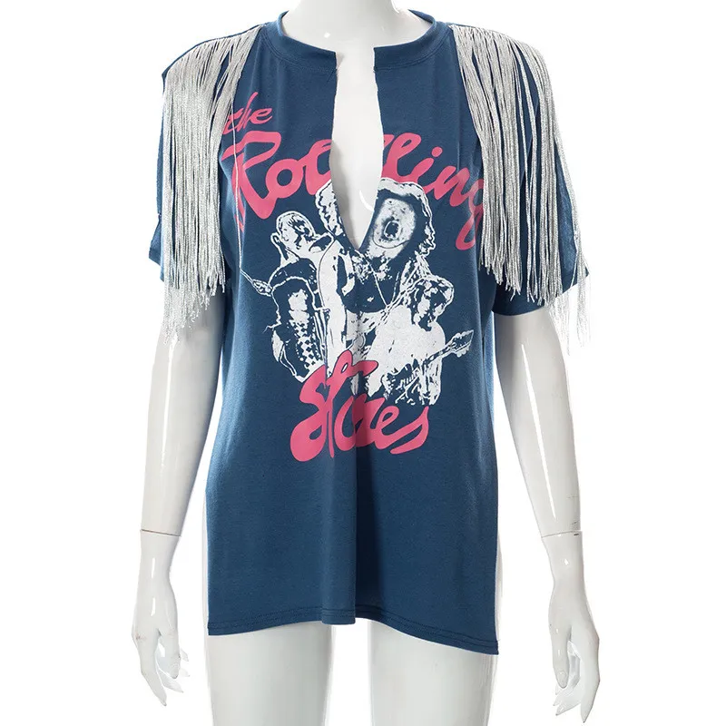 | Product Name | Women Summer Printed V-Neck Slit Tassel Loose T-Shirt |