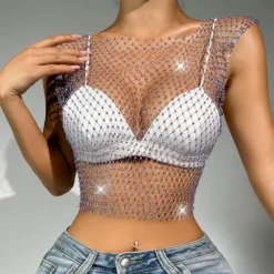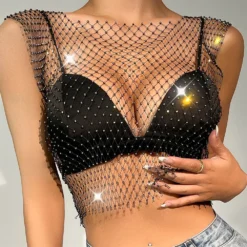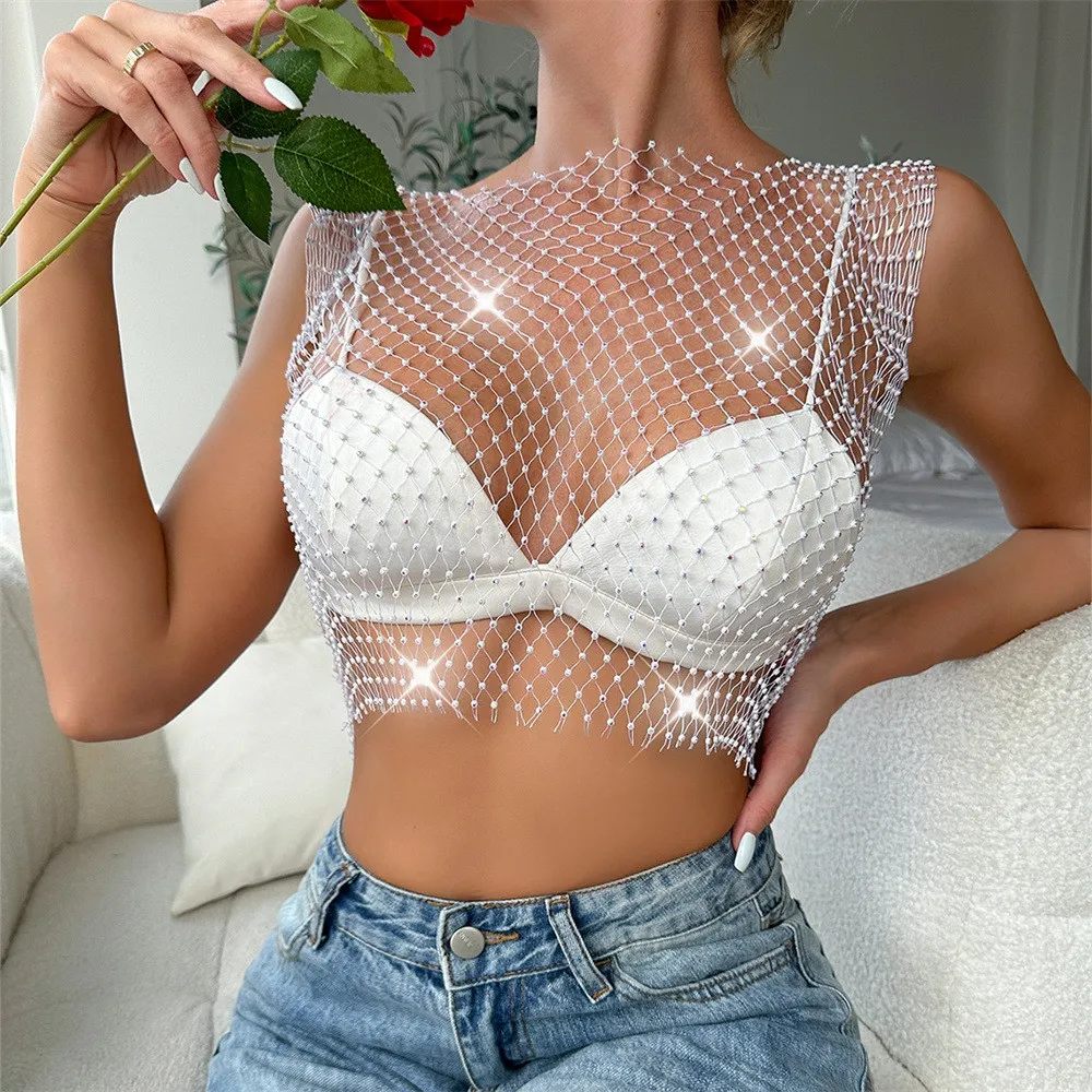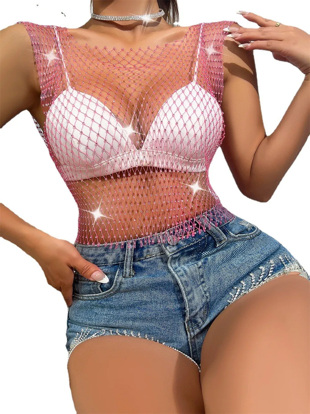 | Product Name | Women Summer Sexy Cutout Halter NeckSolid Square Neck Fishnet Shirt |