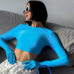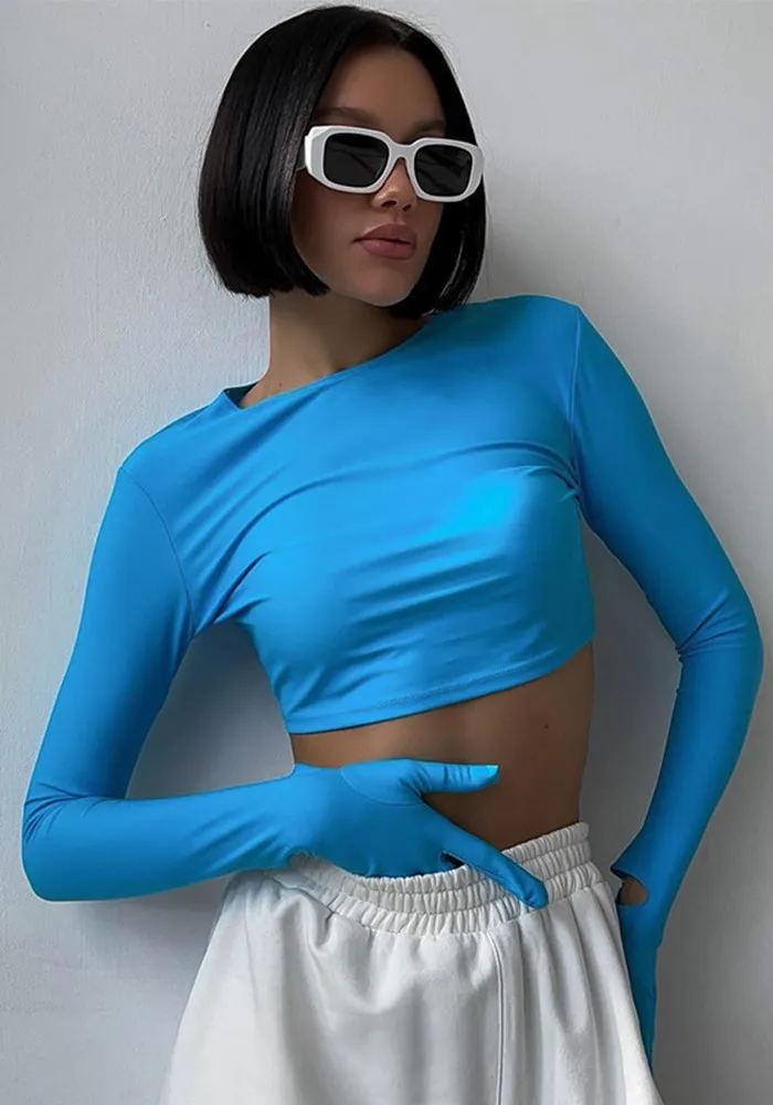 | Product Name | Women Summer Solid Round Neck Long Sleeve Glove Crop T-Shirt |