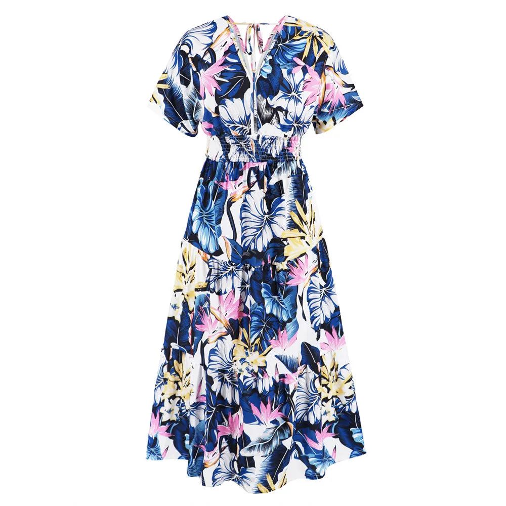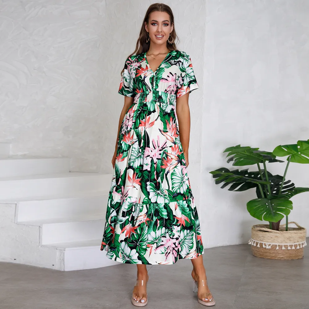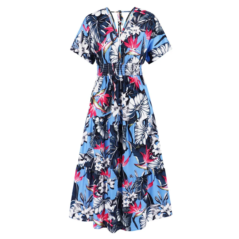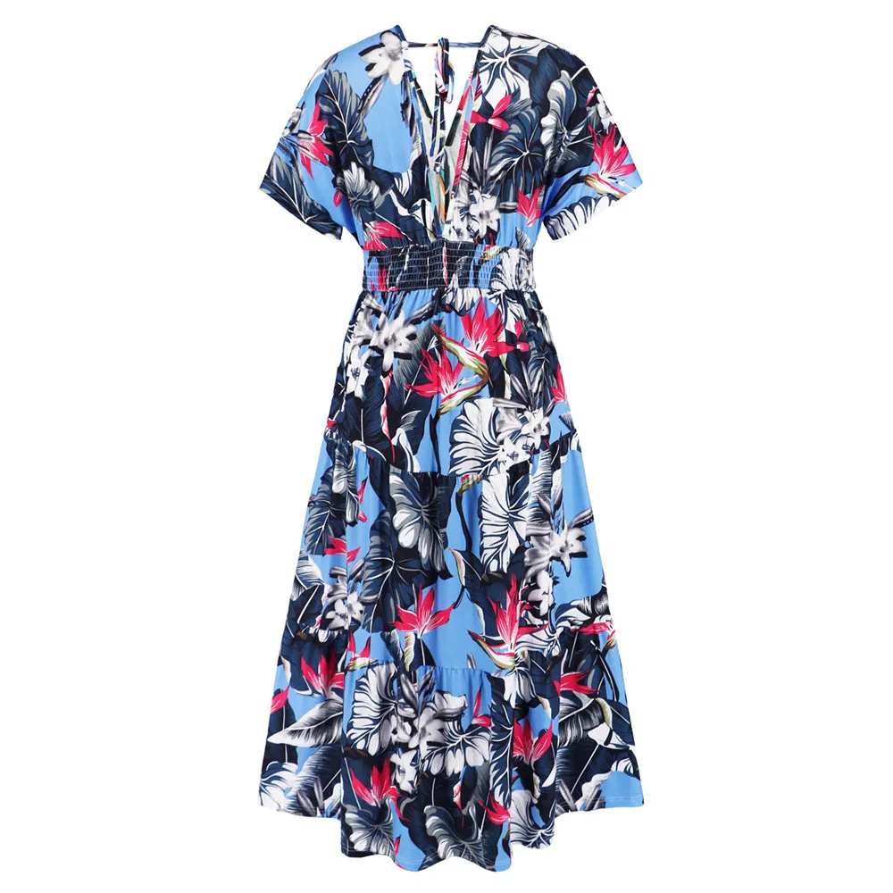 | Product Name | Women summer v-neck short-sleeved floral dress |