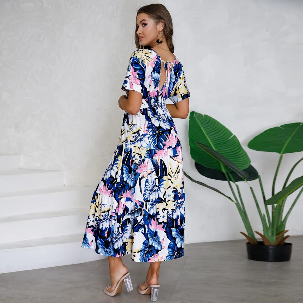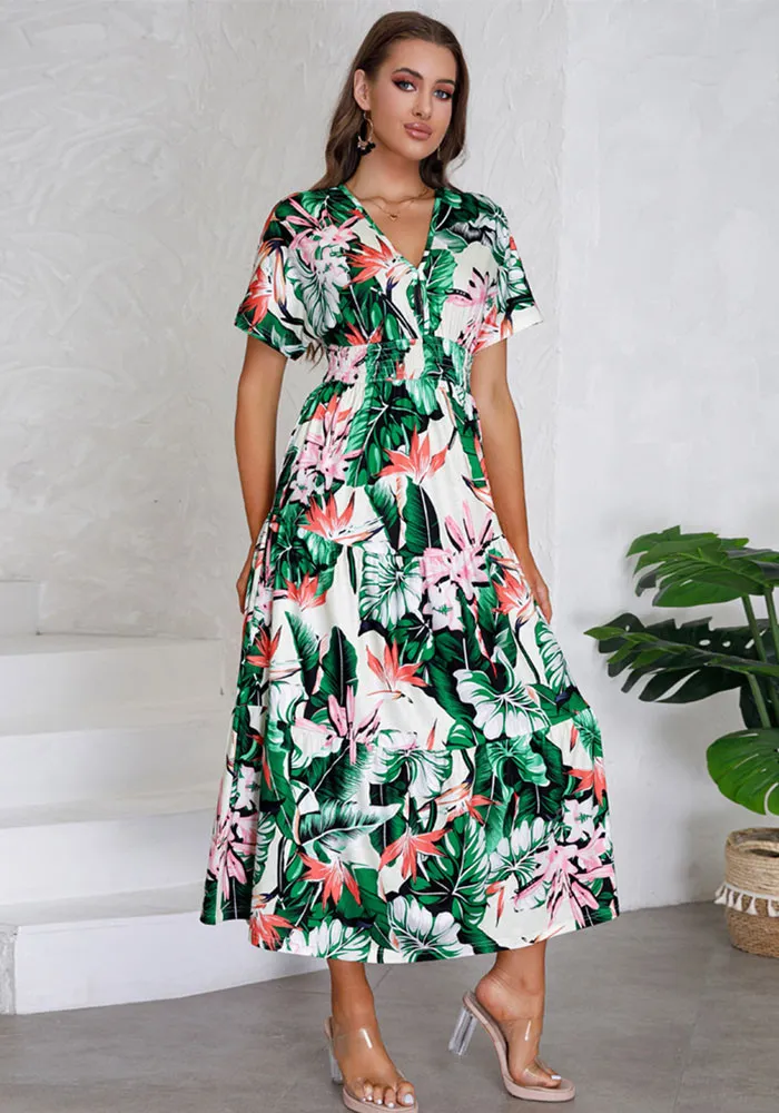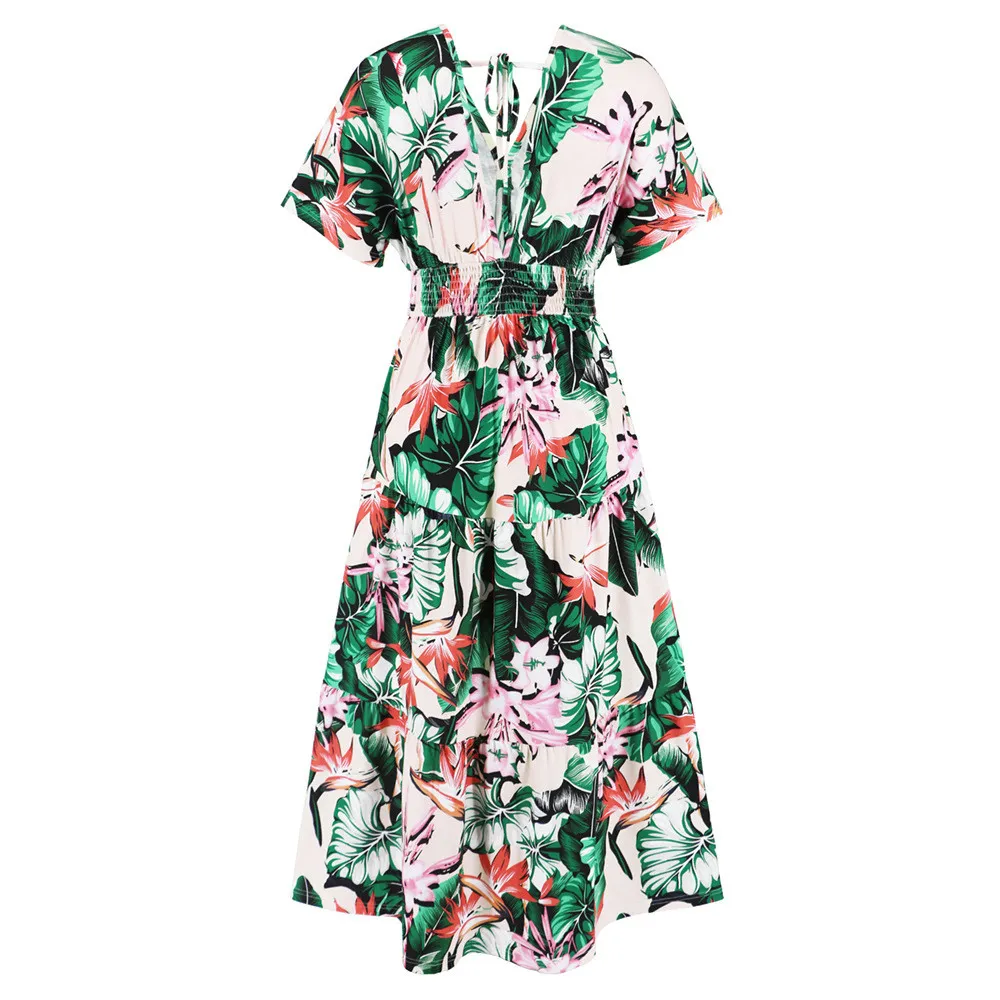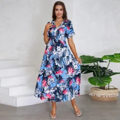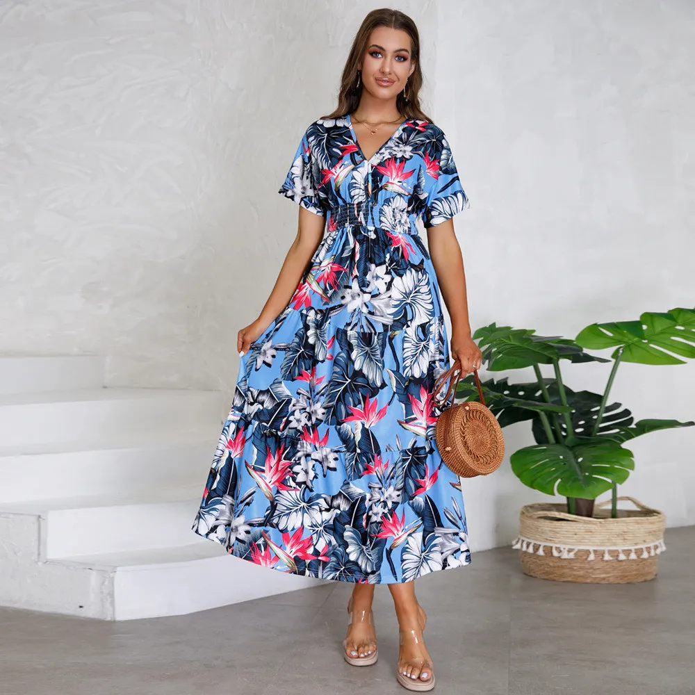 | Product Name | Women summer v-neck short-sleeved floral dress |