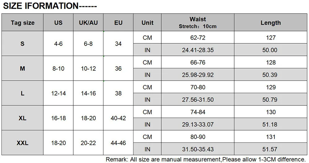 High Elasticity Fabric๏ผPlease add 0-0.5 CM from the garment size to body size.