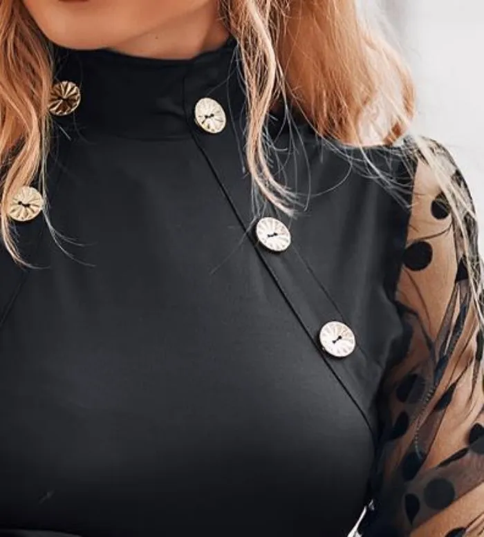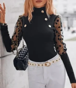 | Product Name | Women Turtleneck See-Through Mesh Long Sleeve Top |