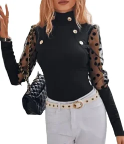 This Women Turtleneck See-Through Mesh Long Sleeve Top Design Made Of Thick Polyster And Spandex Materail, Which Is Soft And Comfortable. It Is a Must-Have Item For All Seasons. Global Lover Offer Most Fashionable Wholesale Women’s t Shirts – From Basic White And Black t Shirts To Lace, And Print t Shirts For Wholesale. We Also Make Customized Shirt With Your Personalized Logo And Print With Low Moq.