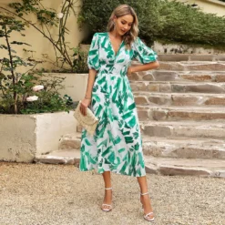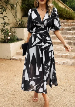 This Women v Neck Printed Long Dress Design Made Of High Quality Polyster And Spandex Material. It Come With Good Stretch And Wearing Comfortable. Womenโs Midi Dresses Is Omnipotent And Suit For All Kinds Of Occasions – Daily Wear, Go To The Church, Commuting And Events Occasion. Midi Dresses Should Not Be Boring, Find Best Midi Dresses At Global Lover With Trendy Styles.