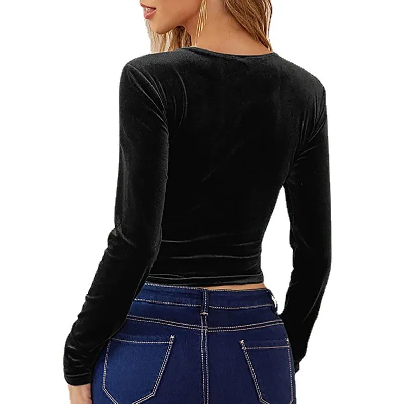 | Product Name | Women V Neck velvet Crop T-Shirt |
